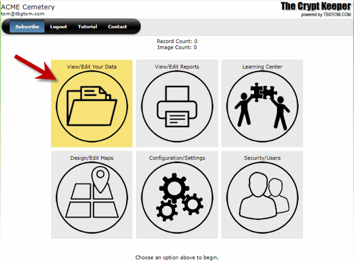 You can either click on View/Edit Your Data or Configuration/Settings. Once you're on the Configuration page, click on the Purchasers Manager menu item, or click the Purchasers menu from the View/Edit Your Data page.